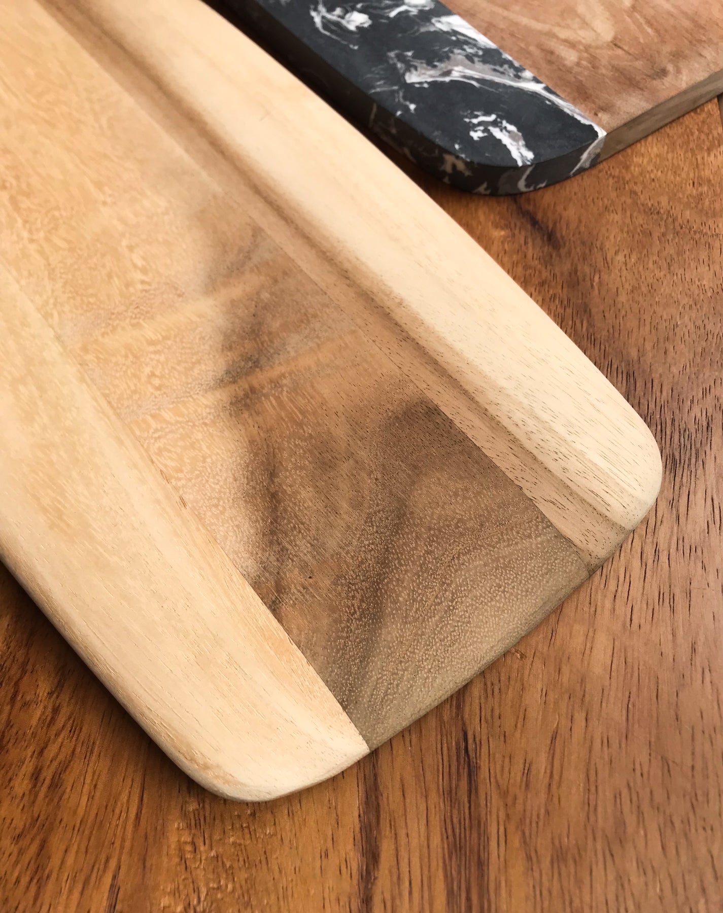 Delicately crafted, this medium sized Tapered Board with a rounded handle will add a unique look to your table. Perfect for serving your guests :)