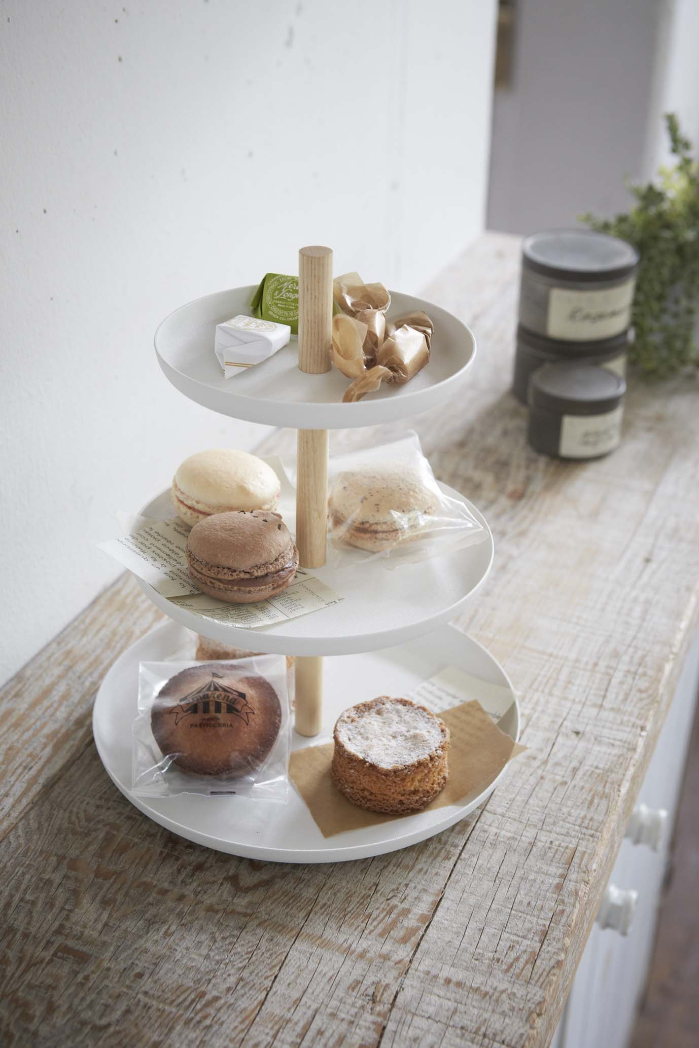 Pretty up your picnic, party, or pantry and pile on the sweets with this three-tiered serving stand. The white trays look delectable when decorated with desserts, candies, or finger foods. Picturing it on your countertop yet?