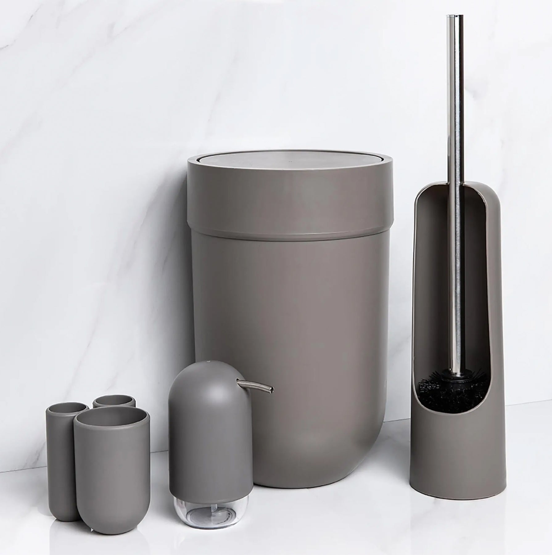 Touch is a modern alternative to the traditional trash can. Touch's soft, matte finish gives it a modern and luxurious feel, while its flat swing lid will keep garbage concealed. Sleek in size, Touch measures 7½ x 12 inches (19 x 30 cm), and holds 1.6 gallons (6L), so you won’t have to take out the trash too often.