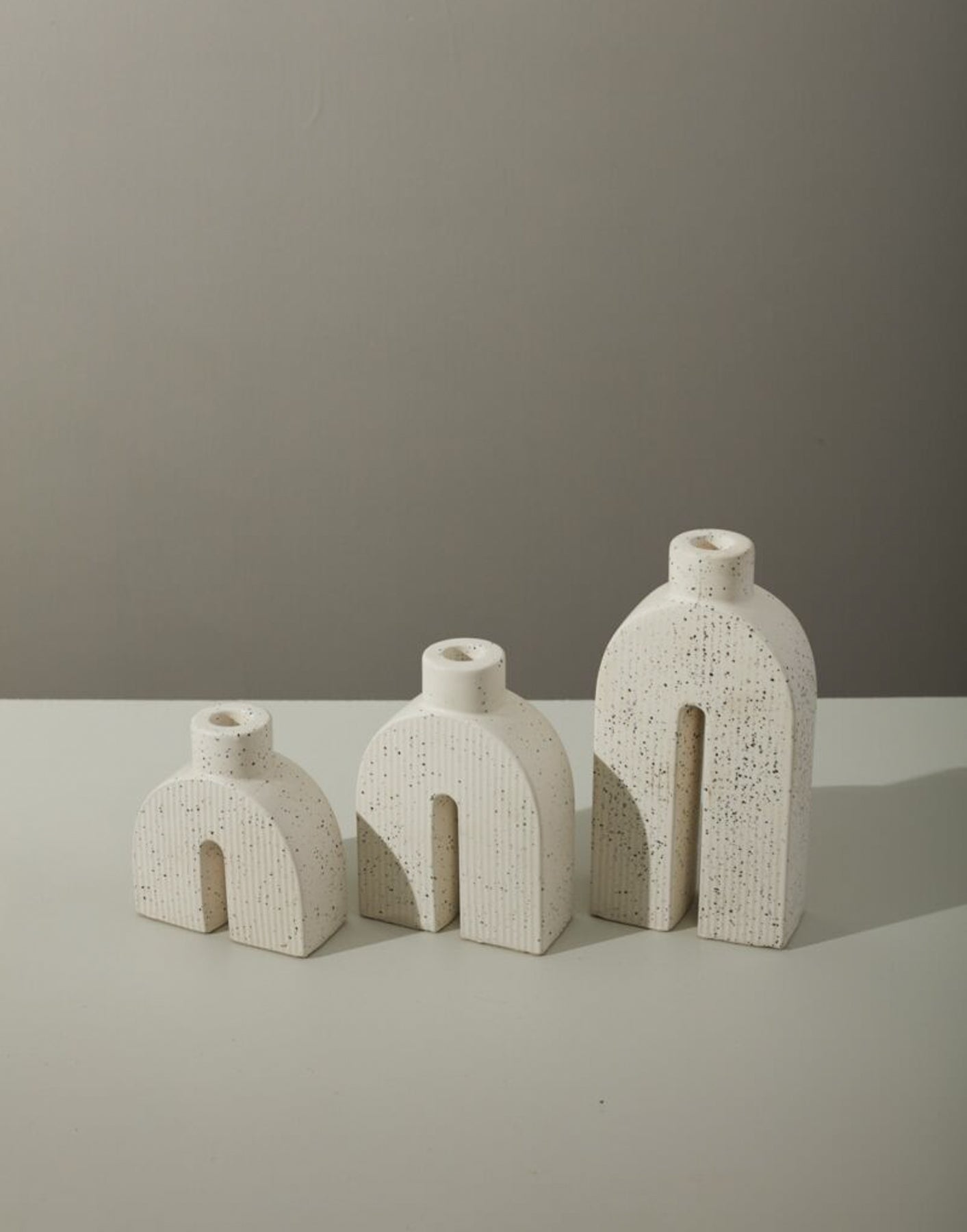 The mindfully modern Trefoil Candleholder is shaped with on-trend arches, with a speckled effect created with black spots of glaze on ivory ceramic. Designed to hold a taper candle, the Trefoil Candleholder is perfect for completing your next event tablescape or decorating your home.