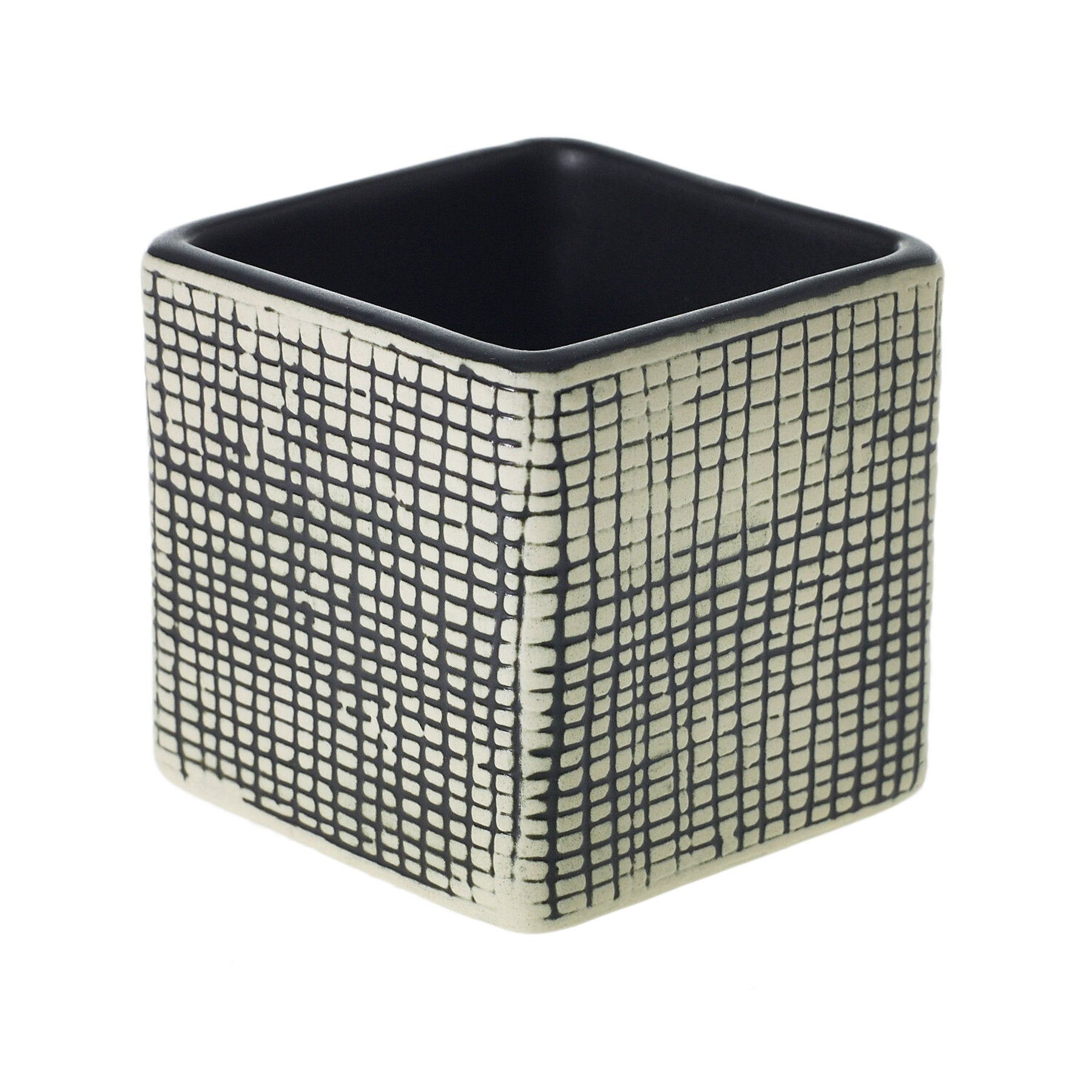 Maceta mediana negra de diseno checkered Texturado