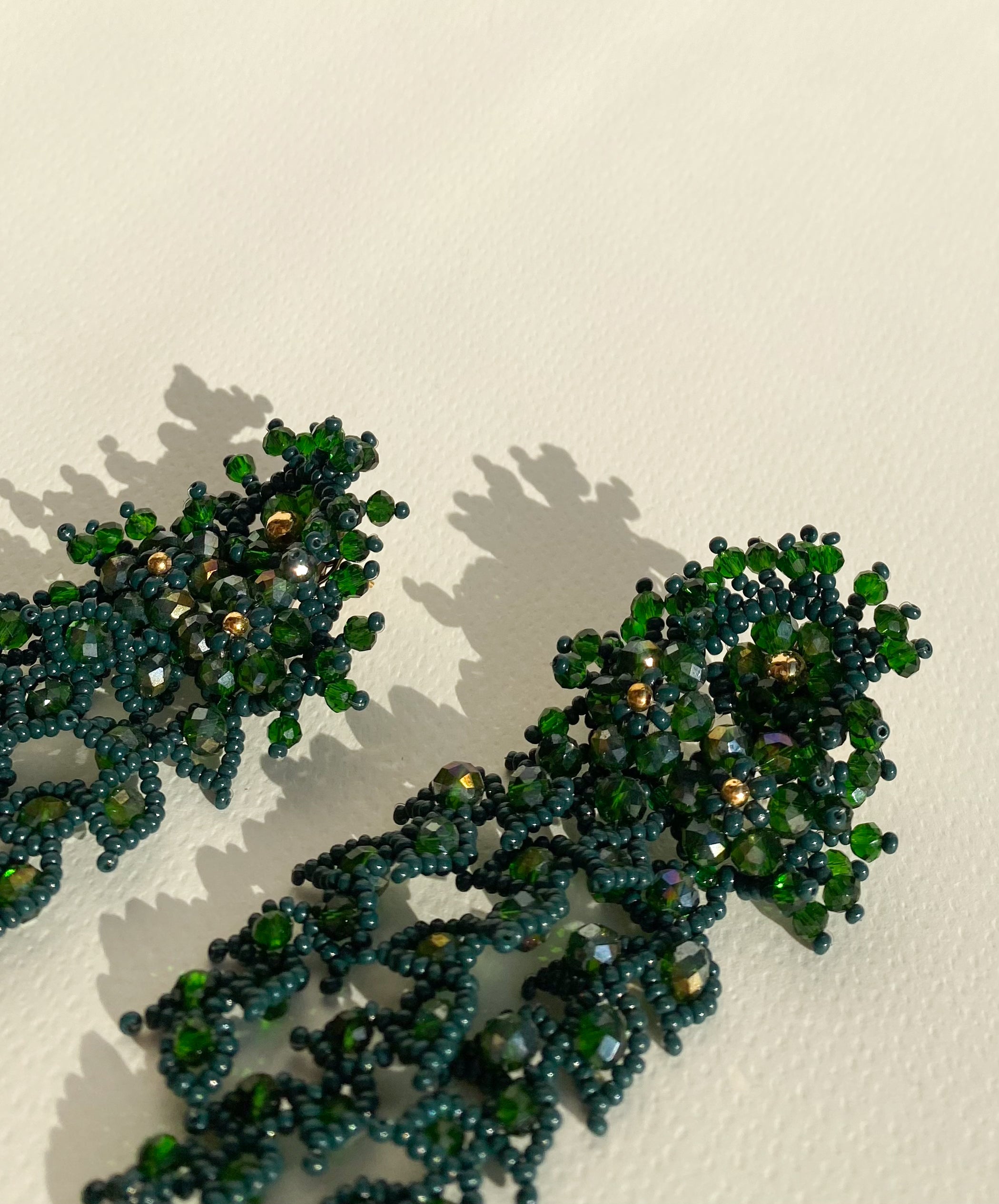 Esta joya es un diseño original de Divana. Diseñado con materiales ligeros únicos como bronce con baño de oro, acrílico, cristales, perlas frescas y Nácar. Todos los productos Divana están hechos a mano y pueden tener variaciones mínimas con respecto a la fotografía presente.