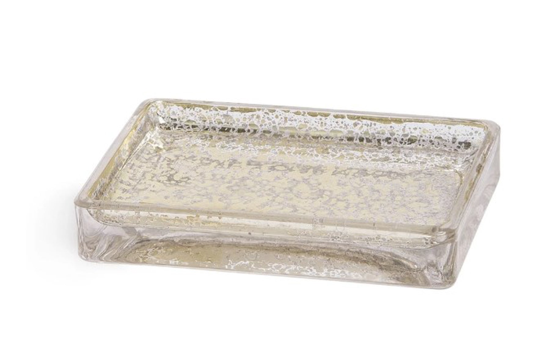 Crafted from sparkling mercury glass, our Vizcaya bath accessories illuminate the bathroom with a delightful shine! Soap Dish measures 13 cm l x 9cm w x 2cm h. Tumbler measures 11cm h, diameter 8cm.