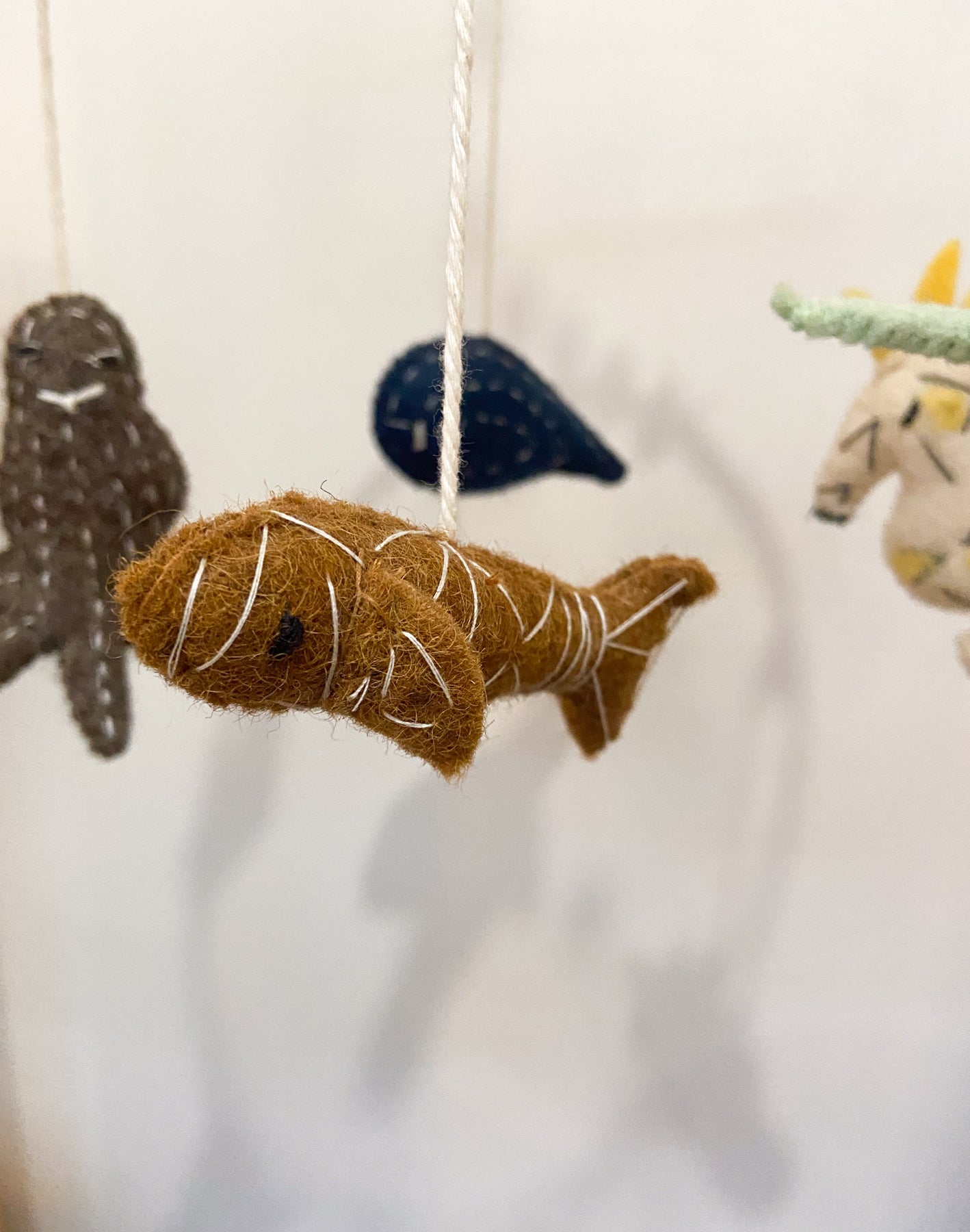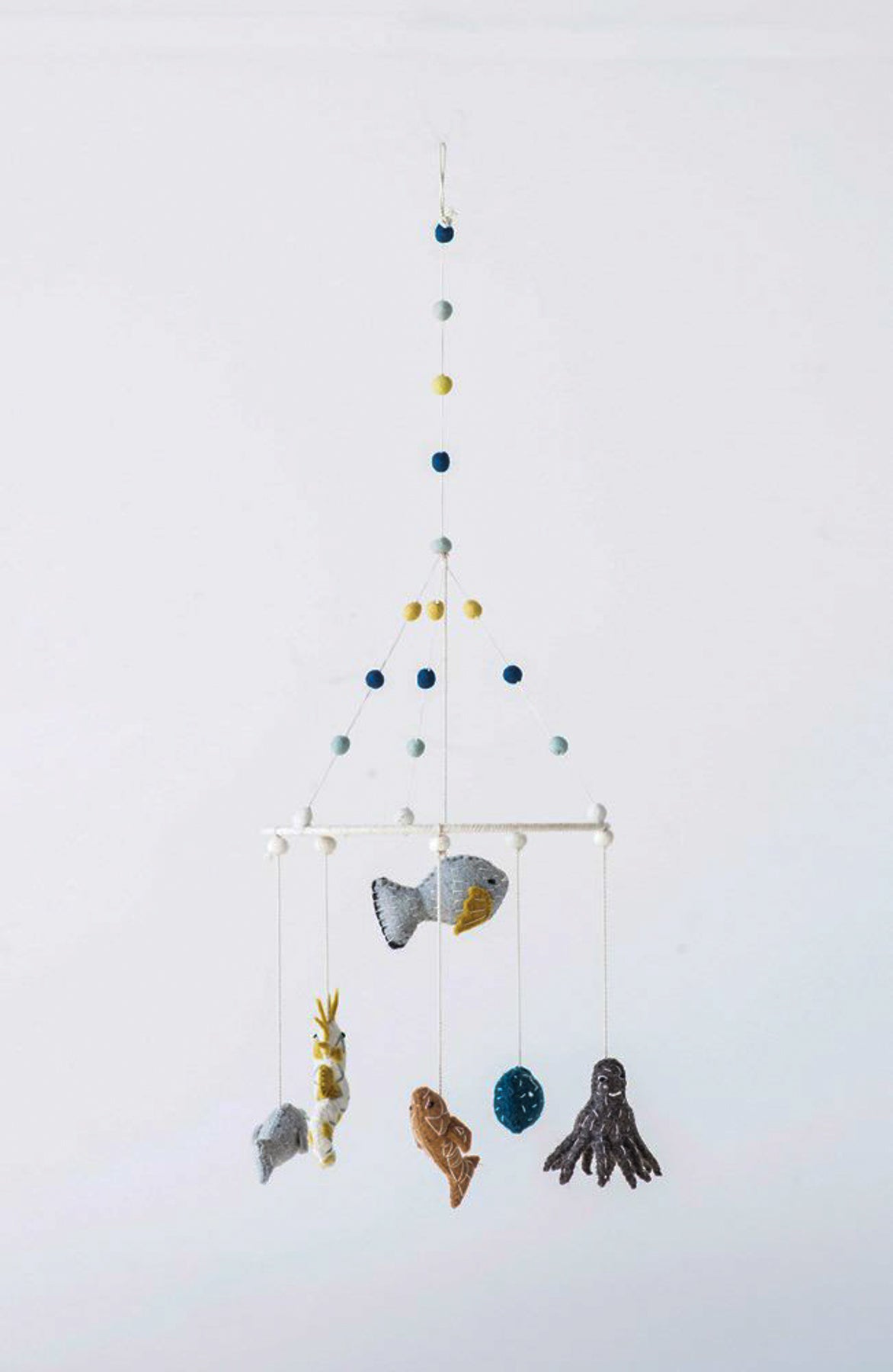 We've got the perfect felted wool and yarn Animal Mobile for your baby's room in calming, fun and neutral colors. Measures 9" Round x 25"H