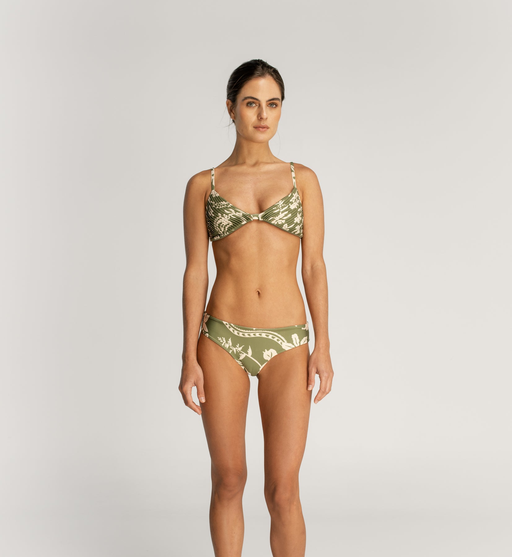 The fabric of this swimwear is made out of recycled plastic bottles.